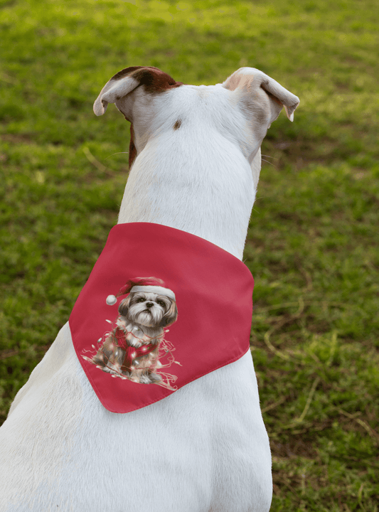 Shih Tzu Wearing a Christmas Hat and Wrapped in Lights Pet Bandana