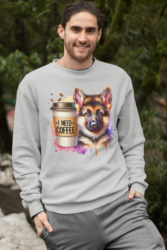 German Shepherd With Coffee Sweatshirt – Gift for Dog & Coffee Lovers