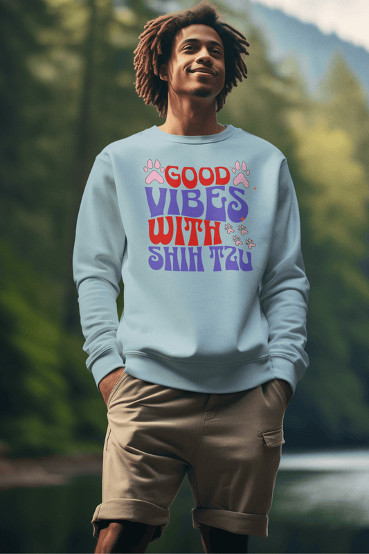Good Vibes With Shih Tzu Sweatshirt – Cozy Crewneck for Dog Lovers