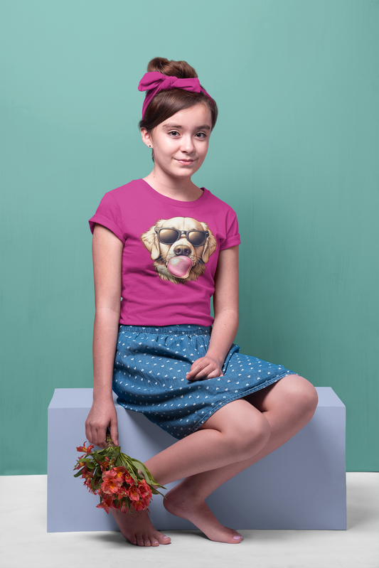 Golden Retriever with Bubble Gum Youth Tee – Fun Gift for Kids