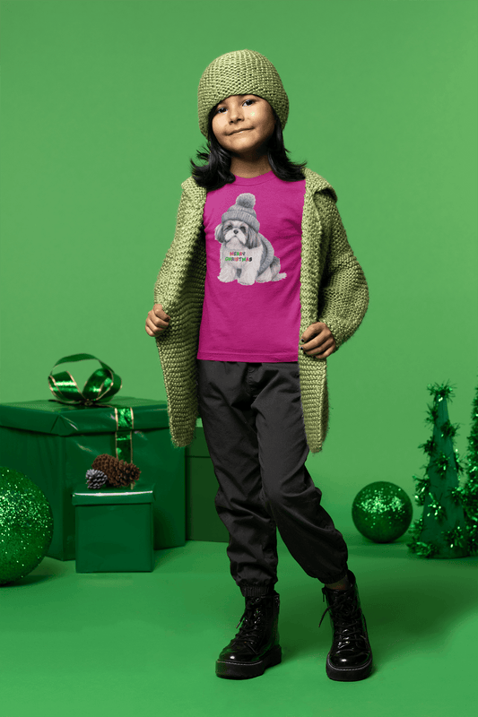 Merry Christmas Shih Tzu Tee - Festive Holiday Shirt for Kids