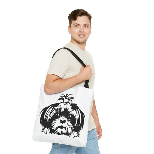 Black and White Shih Tzu with Ponytail Tote Bag