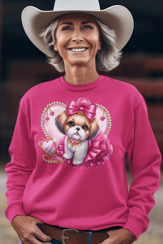 Pink Bow Shih Tzu Sweatshirt – Perfect Gift for Shih Tzu Lovers