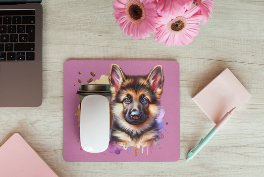 German Shepherd with Coffee Mouse Pad – Gift for Dog & Coffee Lovers