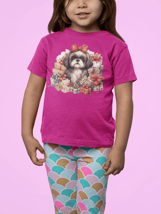 Merry Christmas Shih Tzu Tee - Festive Holiday Shirt for Kids